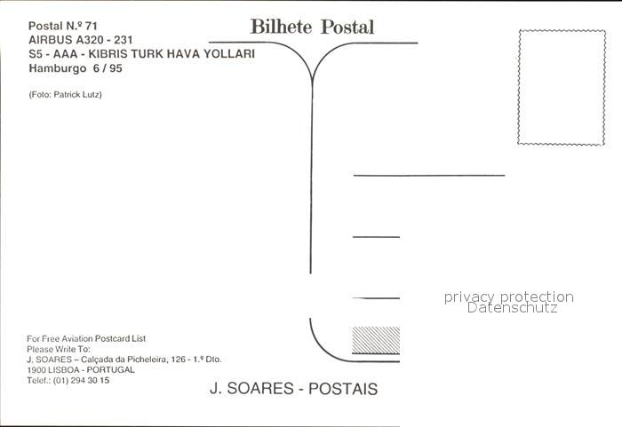 Flugzeuge Zivil Kibris Turk Hava Yollari Airbus A320-231 S5-AAA postalisch nicht gelaufen Erhaltung siehe scans
