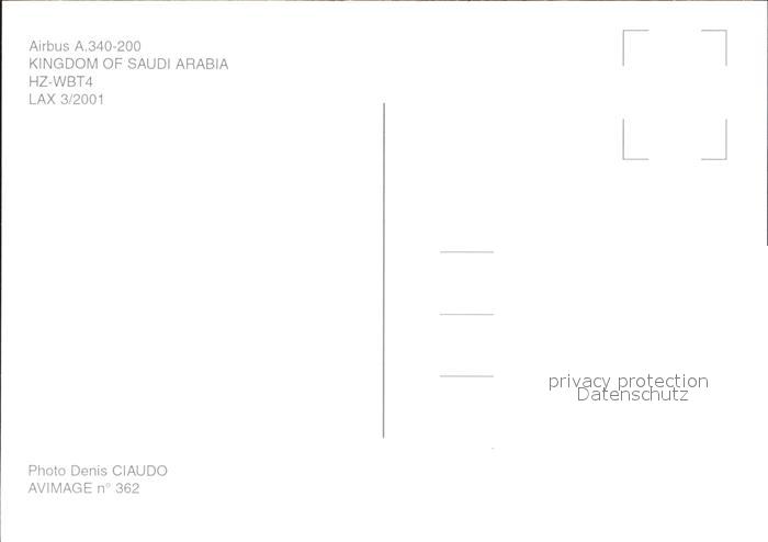 Flugzeuge Zivil Kingdom aof Saudi Arabia Airbus 340-200 HZ-WBT4 postalisch nicht gelaufen Erhaltung siehe scans