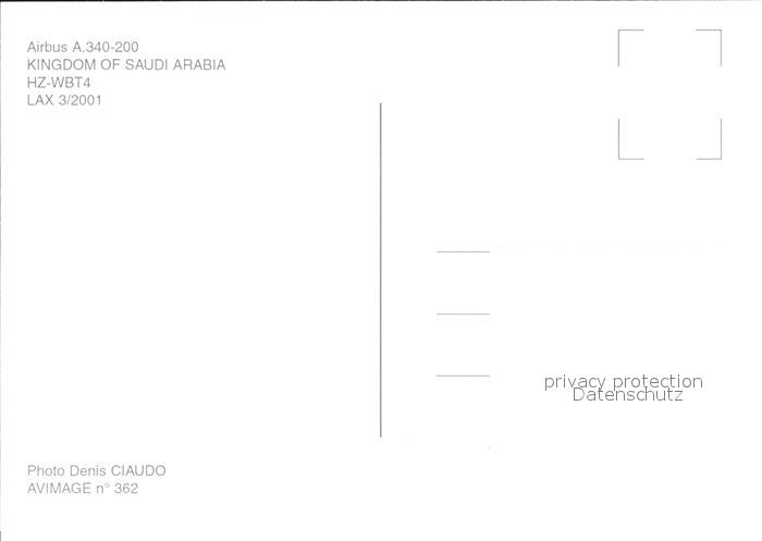 Flugzeuge Zivil Kingdom of Saudi Arabia HZ-WBT4 Airbus 340-200 postalisch nicht gelaufen Erhaltung siehe scans