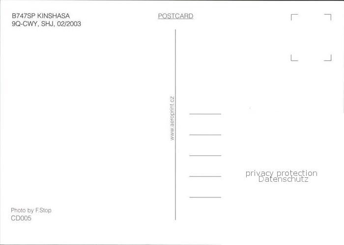 Flugzeuge Zivil Kinshasa B747SP 9Q-CWY postalisch nicht gelaufen Erhaltung siehe scans