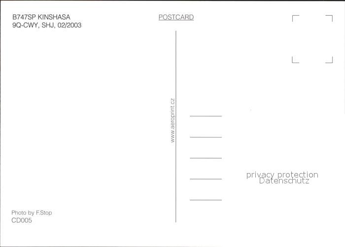 Flugzeuge Zivil Kinshasa B747SP 9Q-CWY SHJ postalisch nicht gelaufen Erhaltung siehe scans