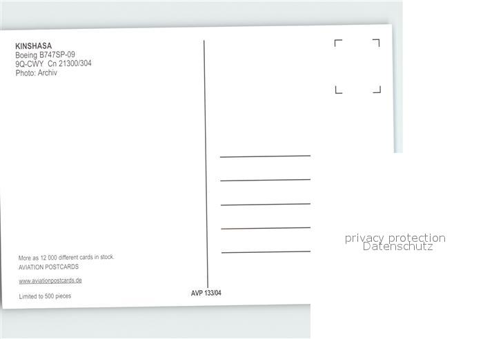 Flugzeuge Zivil Kinshasa Boeing 747SP-09 9Q-CWY Cn 21300/304 postalisch nicht gelaufen Erhaltung siehe scans