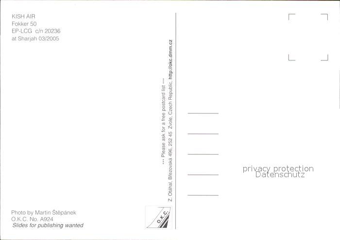 Flugzeuge Zivil Kish Air Fokker 50 EP-LCG c/n 20236 postalisch nicht gelaufen Erhaltung siehe scans
