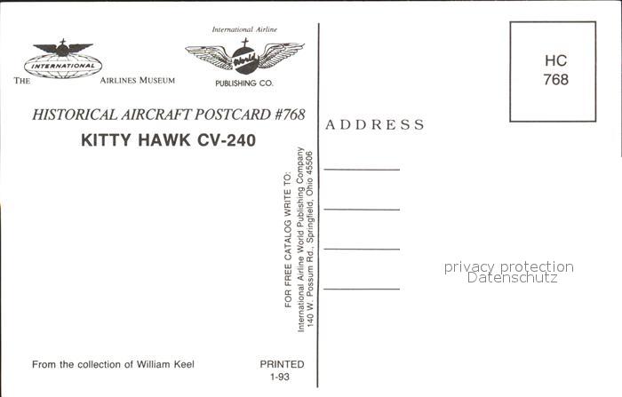 Flugzeuge Zivil Kitty Hawk CV-240 postalisch nicht gelaufen Erhaltung siehe scans