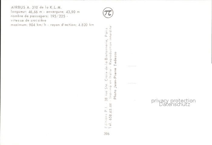 Flugzeuge Zivil KLM Airbus 310 postalisch nicht gelaufen Erhaltung siehe scans