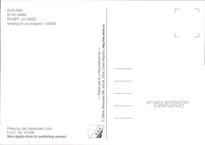 Flugzeuge Zivil KLM Asia B-747-406M PH-BFF c/n 24202 postalisch nicht gelaufen Erhaltung siehe scans
