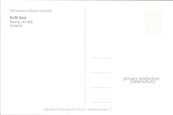 Flugzeuge Zivil KLM Asia Boeing 747-406 PH-BFM postalisch nicht gelaufen Erhaltung siehe scans