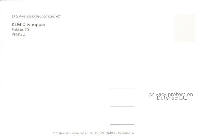 Flugzeuge Zivil KLM Cityhopper Fokker 70 PH-KZC postalisch nicht gelaufen Erhaltung siehe scans