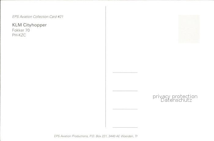 Flugzeuge Zivil KLM Cityhopper Fokker 70 PH-KZC postalisch nicht gelaufen Erhaltung siehe scans