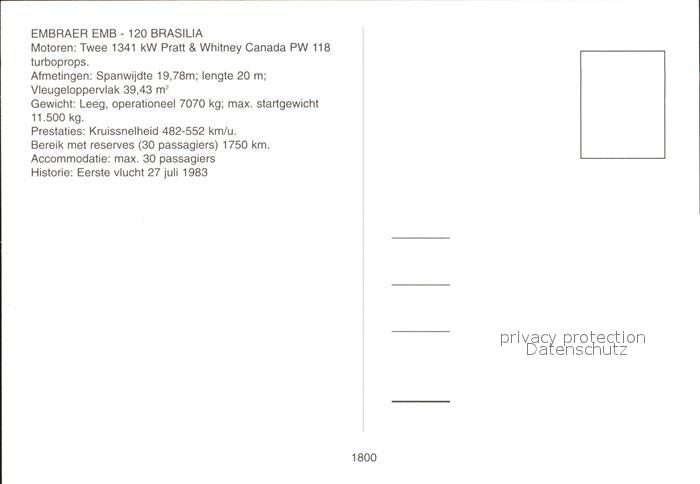 Flugzeuge Zivil KLM Embraer EMB-120 Brasilia postalisch nicht gelaufen Erhaltung siehe scans