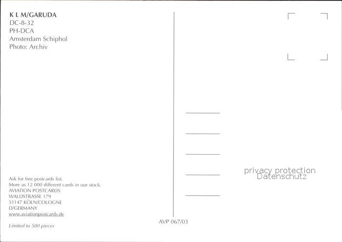 Flugzeuge Zivil KLM Garuda DC-8-32 PH-DCA postalisch nicht gelaufen Erhaltung siehe scans