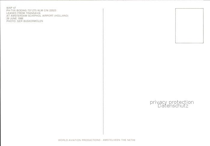 Flugzeuge Zivil KLM PH-TVX Boeing 737-2T5 c/n 22023 postalisch nicht gelaufen Erhaltung siehe scans