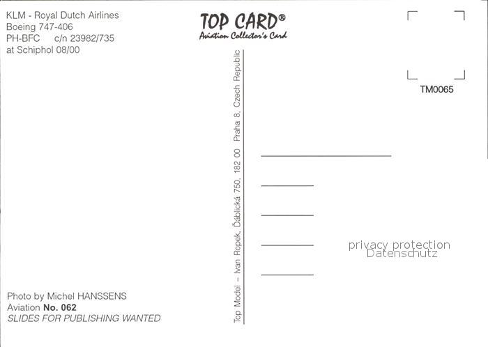 Flugzeuge Zivil KLM Royal Dutch Airlines Boeing 747-406 PH-BFC c/n 23982/735 postalisch nicht gelaufen Erhaltung siehe scans