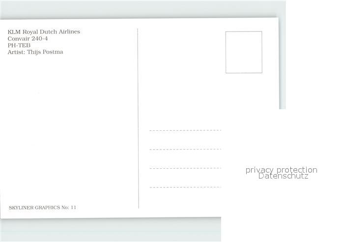 Flugzeuge Zivil KLM Royal Dutch Airlines Convair 240-4 PH-TEB postalisch nicht gelaufen Erhaltung siehe scans