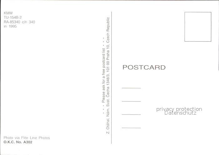 Flugzeuge Zivil KMW TU-154B-2 RA-85340 c/n 340 postalisch nicht gelaufen Erhaltung siehe scans