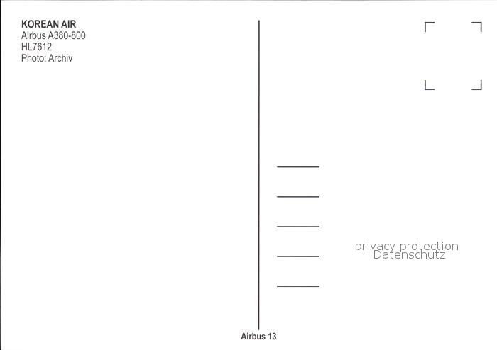 Flugzeuge Zivil Korean Air Airbus 380-800 HL7612 postalisch nicht gelaufen Erhaltung siehe scans