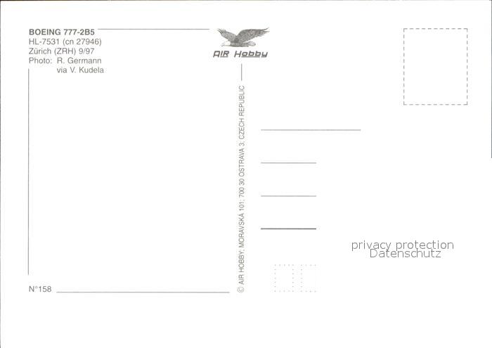 Flugzeuge Zivil Korean Air Boeing 777-2B5 HL-7531 cn 27946 postalisch nicht gelaufen Erhaltung siehe scans