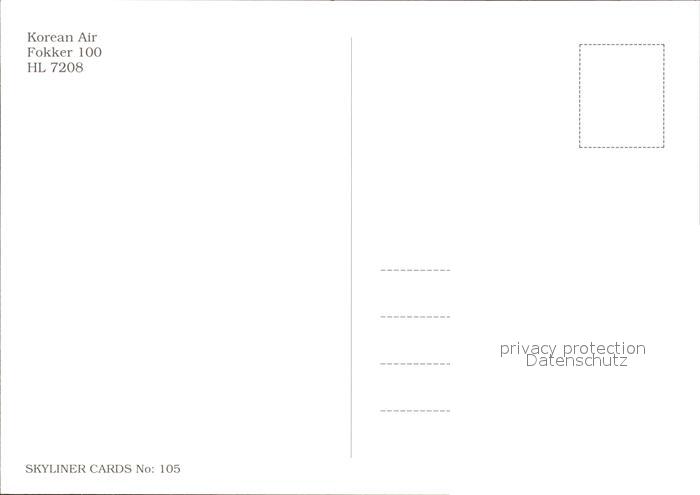 Flugzeuge Zivil Korean Air Fokker 100 HL-7208 postalisch nicht gelaufen Erhaltung siehe scans