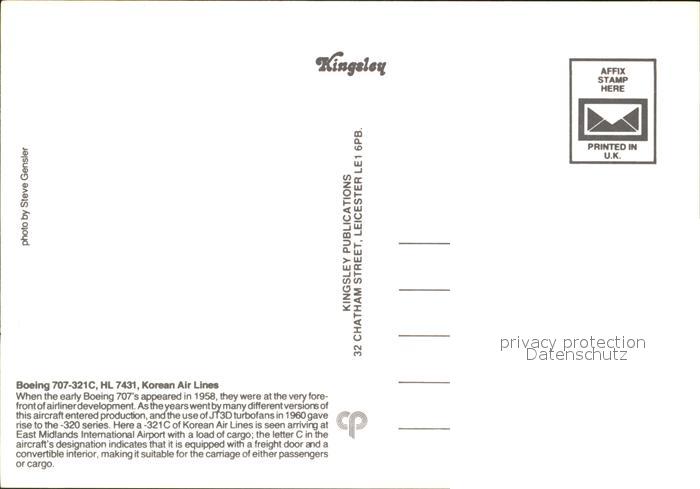 Flugzeuge Zivil Korean Air Lines Boeing 707-321C HL-7431 postalisch nicht gelaufen Erhaltung siehe scans