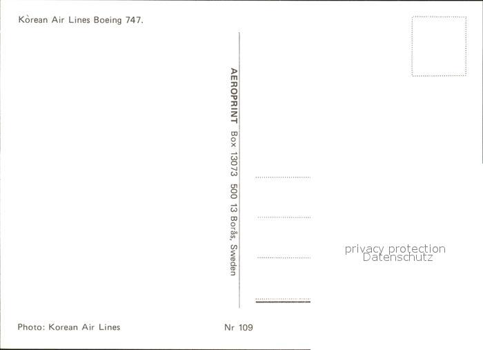 Flugzeuge Zivil Korean Air Lines Boeing 747 postalisch nicht gelaufen Erhaltung siehe scans