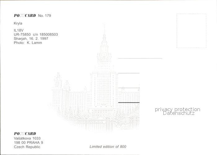Flugzeuge Zivil Kryla IL 18V UR-75850 Sharjah postalisch nicht gelaufen Erhaltung siehe scans