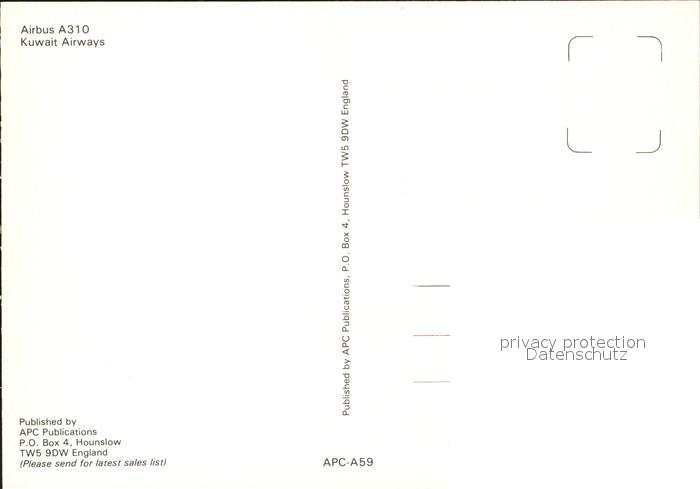 Flugzeuge Zivil Kuwait Airways A310 TW5 9DW postalisch nicht gelaufen Erhaltung siehe scans