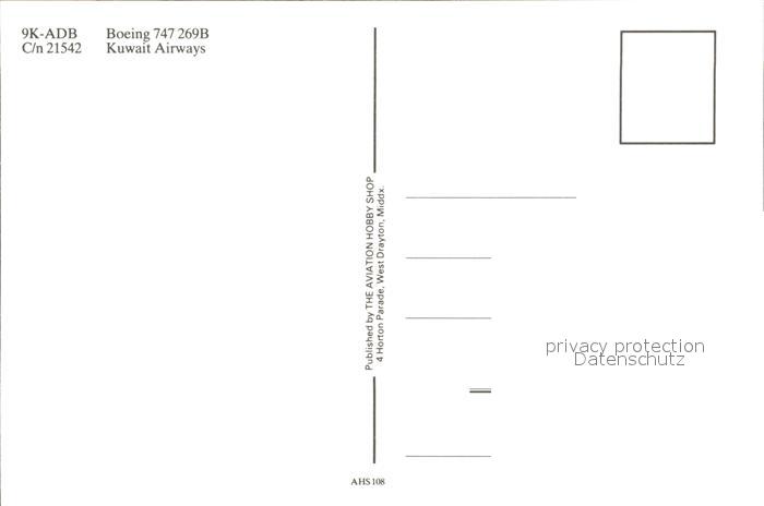 Flugzeuge Zivil Kuwait Airways Boeing 747-269B 9K-ADB C/n 21542 postalisch nicht gelaufen Erhaltung siehe scans