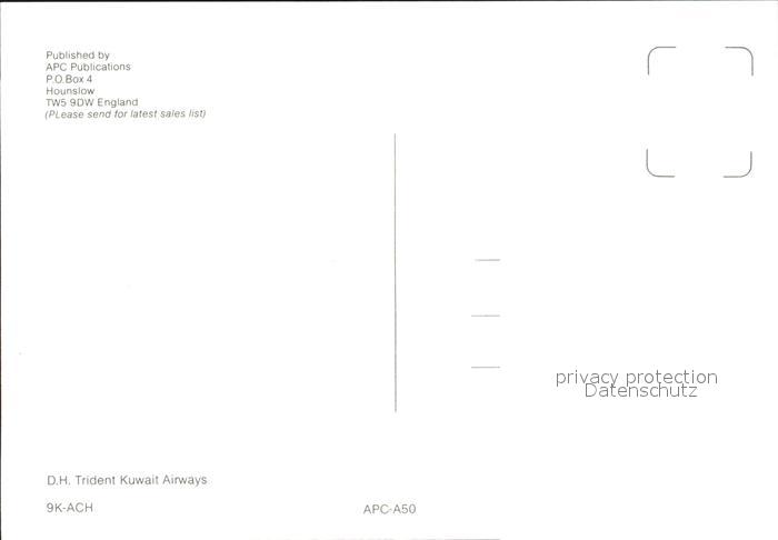 Flugzeuge Zivil Kuwait Airways D.H. Trident 9K-ACH postalisch nicht gelaufen Erhaltung siehe scans
