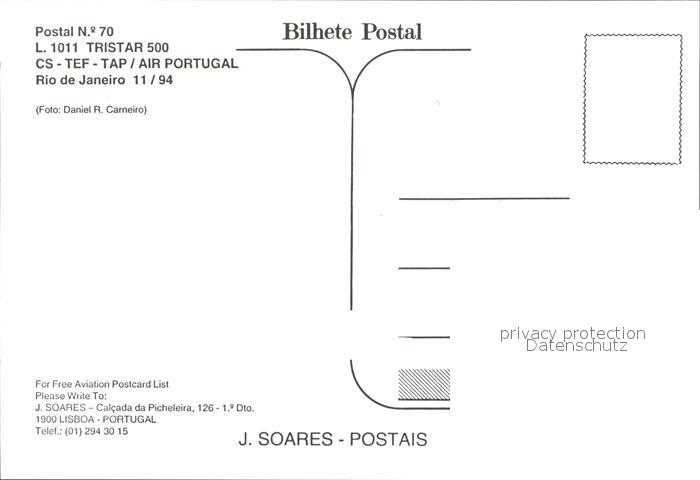 Flugzeuge Zivil L.1011 Tristar 500 CS-TEF-TAP/Air Portugal Rio de Janeiro postalisch nicht gelaufen Erhaltung siehe scans