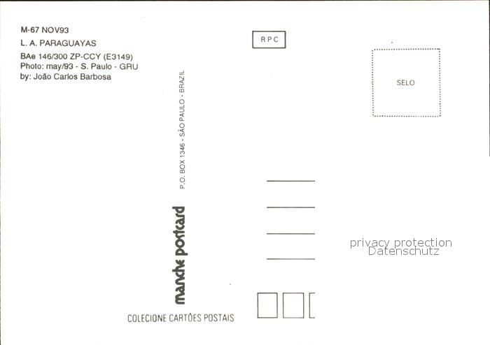 Flugzeuge Zivil L.A. Paraguayas BAe 146-300 ZP-CCY E3149 postalisch nicht gelaufen Erhaltung siehe scans