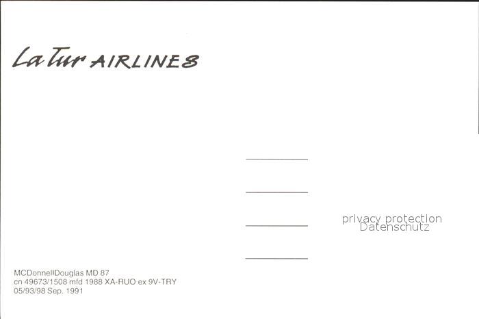 Flugzeuge zivil La Tur Airlines MCDonnel Douglas MD 67 postalisch nicht gelaufen Erhaltung siehe scans