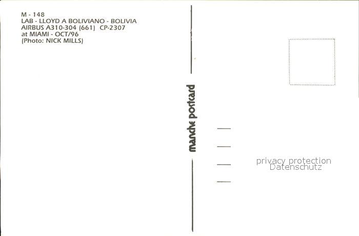 Flugzeuge Zivil LAB Lloyd A Boliviana A310-304 CP-2307 postalisch nicht gelaufen Erhaltung siehe scans
