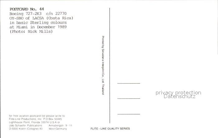 Flugzeuge Zivil Lacsa Boeing 727-2K3 c/n 22770 OY-SBO postalisch nicht gelaufen Erhaltung siehe scans