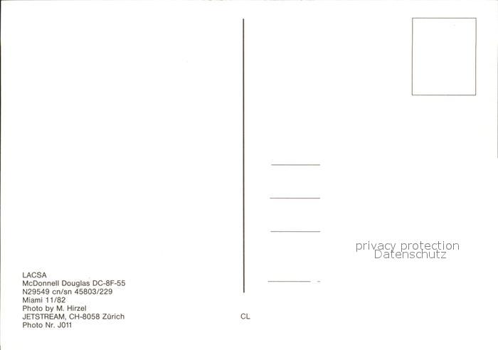 Flugzeuge Zivil LACSA McDonnell douglas DC-8F-55 N29549 cn/sn 45803/229 Miami 1982 postalisch nicht gelaufen Erhaltung siehe scans