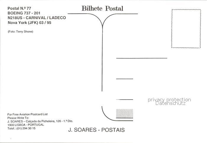 Flugzeuge Zivil Ladeco USA Express Boeing 737-201 N218US Carnival postalisch nicht gelaufen Erhaltung siehe scans