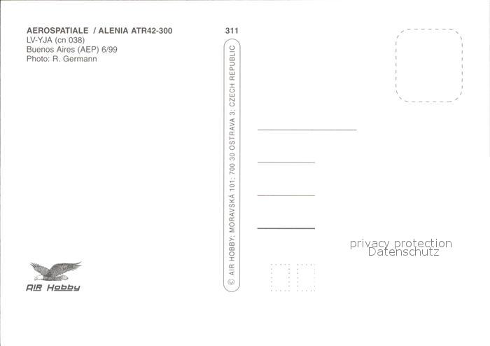 Flugzeuge zivil LAER Aerospatiale Alenia ATR42-300 LV-YJA (cn 038) Buenos Aires postalisch nicht gelaufen Erhaltung siehe scans