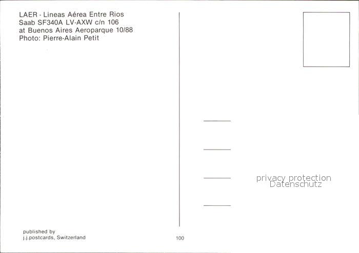 Flugzeuge Zivil LAER Lineas Aerea Entre Rios Saab SF340A LV-AXW c/n 106 postalisch nicht gelaufen Erhaltung siehe scans