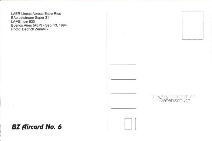 Flugzeuge Zivil LAER Lineas Aereas Entre Rios BAe Jetstream Super 31 LV-VEI c/n 830 postalisch nicht gelaufen Erhaltung siehe scans