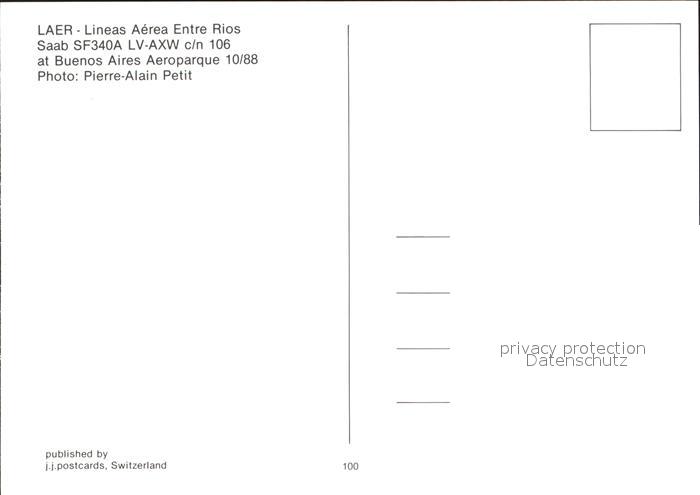 Flugzeuge Zivil LAER Saab SF340A LV-AXW c/n 106 postalisch nicht gelaufen Erhaltung siehe scans