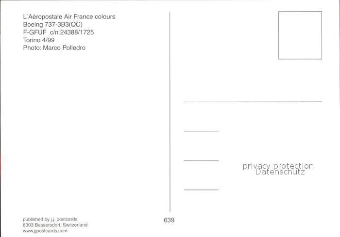 Flugzeuge Zivil L’Aeropostale Air France Boeing 737-3B3 QC F-GFUF postalisch nicht gelaufen Erhaltung siehe scans