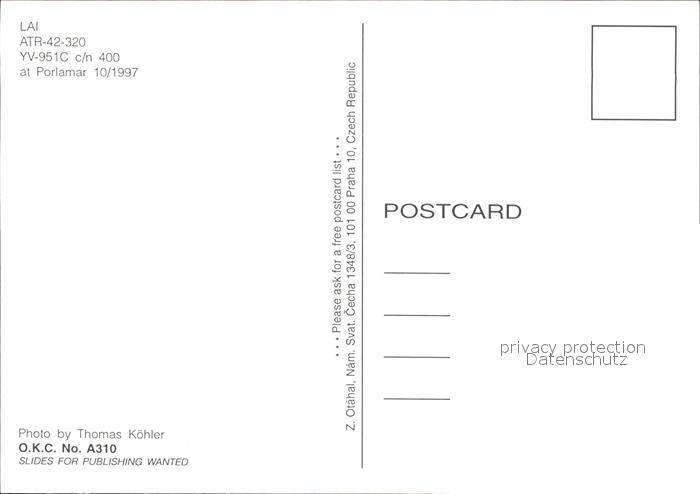 Flugzeuge Zivil LAI ATR-42-320 YV-951C c/n 400 postalisch nicht gelaufen