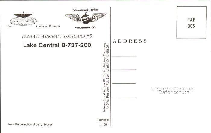 Flugzeuge Zivil Lake Central B-737-200 postalisch nicht gelaufen Erhaltung siehe scans