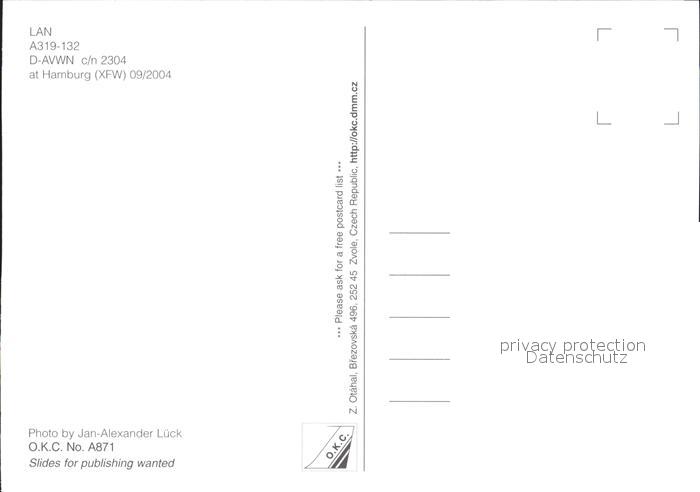 Flugzeuge Zivil LAN A319-132 D-AVWN c/n 2304 postalisch nicht gelaufen Erhaltung siehe scans