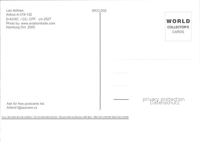Flugzeuge Zivil Lan Airlines Airbus A-319-132 D-AVXC CC-CPF c/n 2527 postalisch nicht gelaufen Erhaltung siehe scans