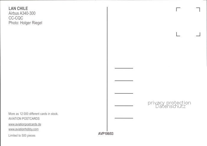 Flugzeuge Zivil Lan Chile Airbus A340-300 CC-CQC postalisch nicht gelaufen Erhaltung siehe scans