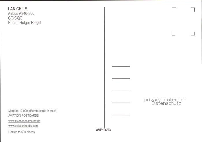 Flugzeuge Zivil Lan Chile Airbus A340-300 CC-CQC postalisch nicht gelaufen Erhaltung siehe scans