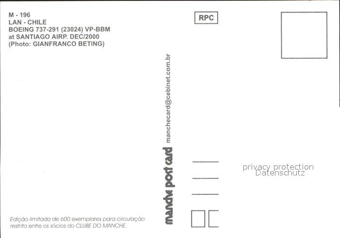 Flugzeuge Zivil LanChile Boeing 737-291 VP-BBM postalisch nicht gelaufen Erhaltung siehe scans