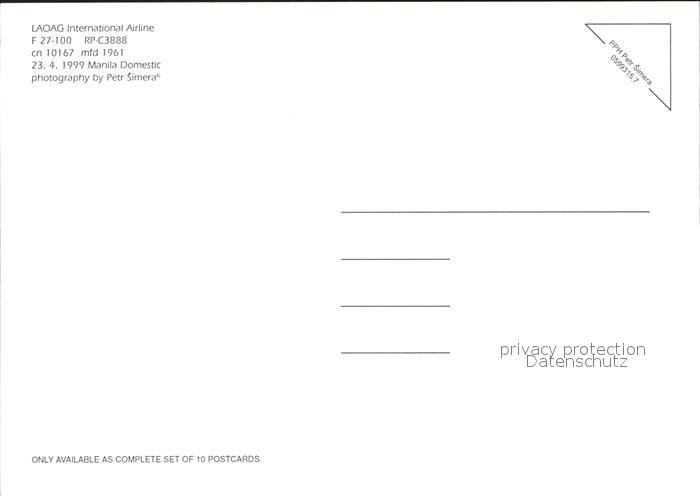 Flugzeuge Zivil Laoag International Airline F-27-100 RP-C3888 cn 10167 postalisch nicht gelaufen Erhaltung siehe scans