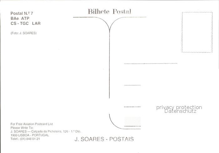 Flugzeuge Zivil LAR BAe ATP CS-TGC postalisch nicht gelaufen Erhaltung siehe scans
