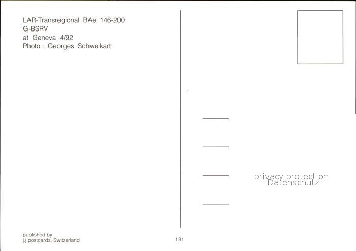 Flugzeuge Zivil Lar Transregional BAe 146-200 G-BSRV postalisch nicht gelaufen Erhaltung siehe scans